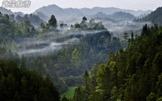 它地处乌江画廊又一幅壮观的山水画。 万峰林海因山丘众多,森林覆盖面大而得名。万峰地形由西向东倾斜,北面稍高,南面略低,四周突起,形似木舟。舟中山丘林立,星落棋布,松杉杂木,浓郁葱葱,溪流纵横,素有“林海”的美称。由于地貌相似,行人初至,易于迷途,有如入“八阵图”之感。若雨后天晴,山间云雾缭绕,此时若站在乡政府后收,疑似仙境降人间。山顶上放眼望去,其景之壮观,胜似云海。今若在高桩子筑一堤坝,万峰河谷将成为上千亩的人工湖泊,山中有水,水中有山,清山绿水,碧波荡漾,湖光山色,浑然一体,蔚为壮观。若身处其境,或划船、或登山、或垂钓、或观景,定会使你留连忘返,美不胜。