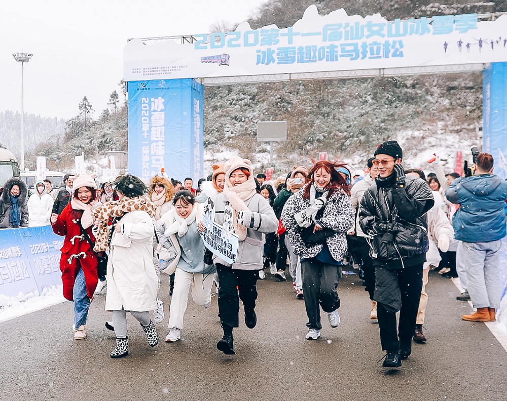 仙女山冰雪趣味马拉松开跑。
