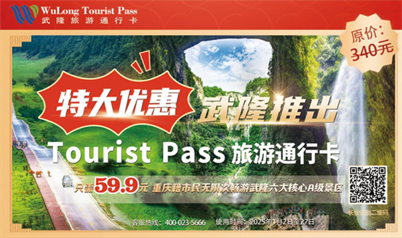 想要前往仙女山耍雪的宝子们,不要多花冤枉钱了,武隆景区推出了“WuLong Tourist Pass—武隆旅游通行卡”,该通行卡的优惠力度巨大,近乎“免费”。针对重庆籍游客,原价340元,1月2日至1月27日,只需59.9元即可购买仙女山、天生三桥、芙蓉洞、芙蓉江、龙水峡地缝、白马山天尺情缘六大核心精品景区套票,无限次入园(如果第一天未能玩得尽兴,第二天、第三天,乃至活动期间的任何一天,都可以接着玩)。这么好的羊毛不薅可就亏大了,抓紧时间打开微信或支付宝搜索“武隆景区官方平台”小程序,或到武隆景区售票窗口,实名购票吧。