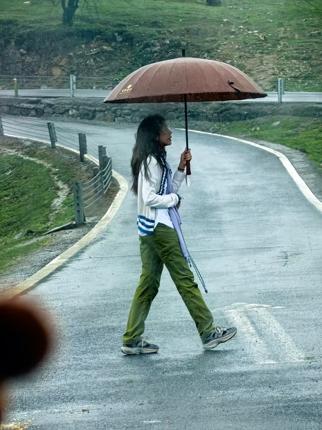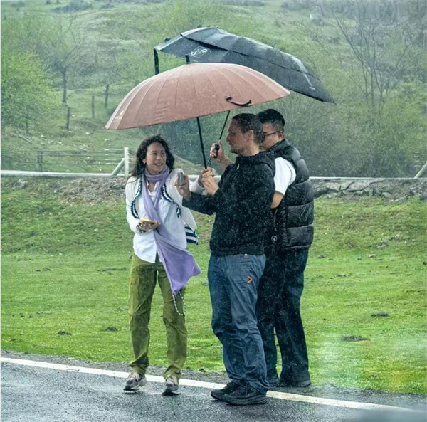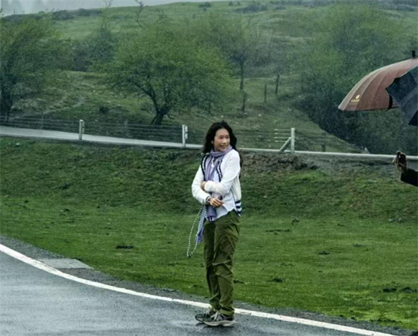 莫文蔚此次武隆之行,打扮得十分低调。她身穿白色T恤、军绿色休闲裤,围着紫色长围巾,留着披肩长发,戴着鸭舌帽,与外籍老公一同漫步在仙女山大草原的最美公路上。从跌宕起伏的山峦,到苍翠欲滴的林海,再到延绵天际的大草原,处处被浓雾环绕,如诗如画,宛如人间仙境。莫文蔚夫妇被这如梦如幻的美景深深吸引,驻足观赏,仿佛时间都为他们停留。