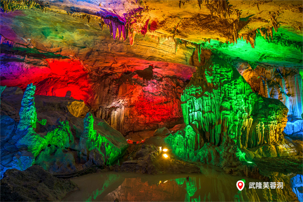 溶洞探险自由get!乘游船看芙蓉江“喀斯特百里画廊”,钻进18℃的芙蓉洞看钟乳石“生长”,灯光下的“珊瑚瑶池”美到窒息!