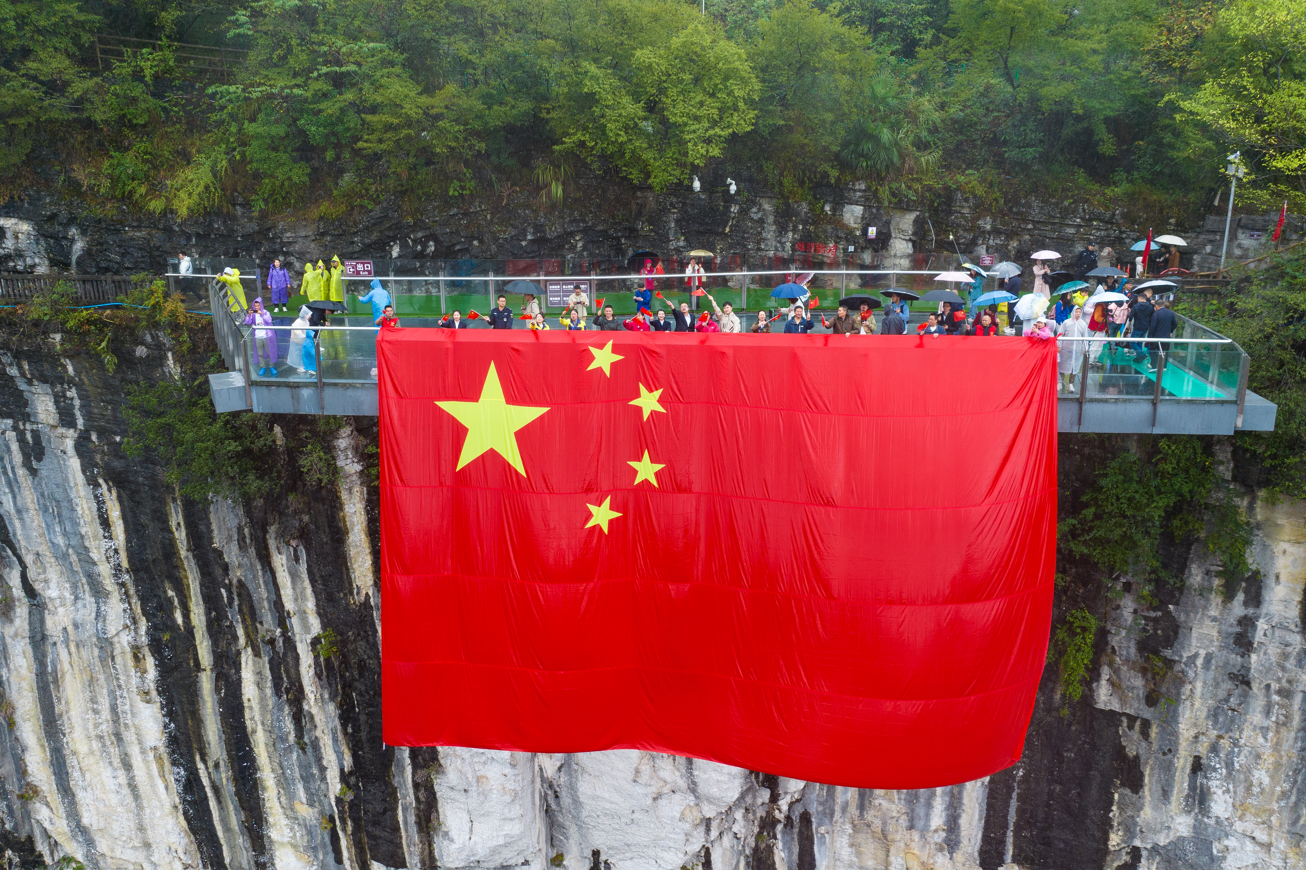 从白昼到星夜,武隆欢腾不息。天生三桥玻璃眺台系满国旗,游客持通行证有序前行,聆听地质传奇时收获 “国庆愉快” 祝福;跑马场边,武术表演因观众热情临时加场,红绸翻飞赢得满场喝彩。