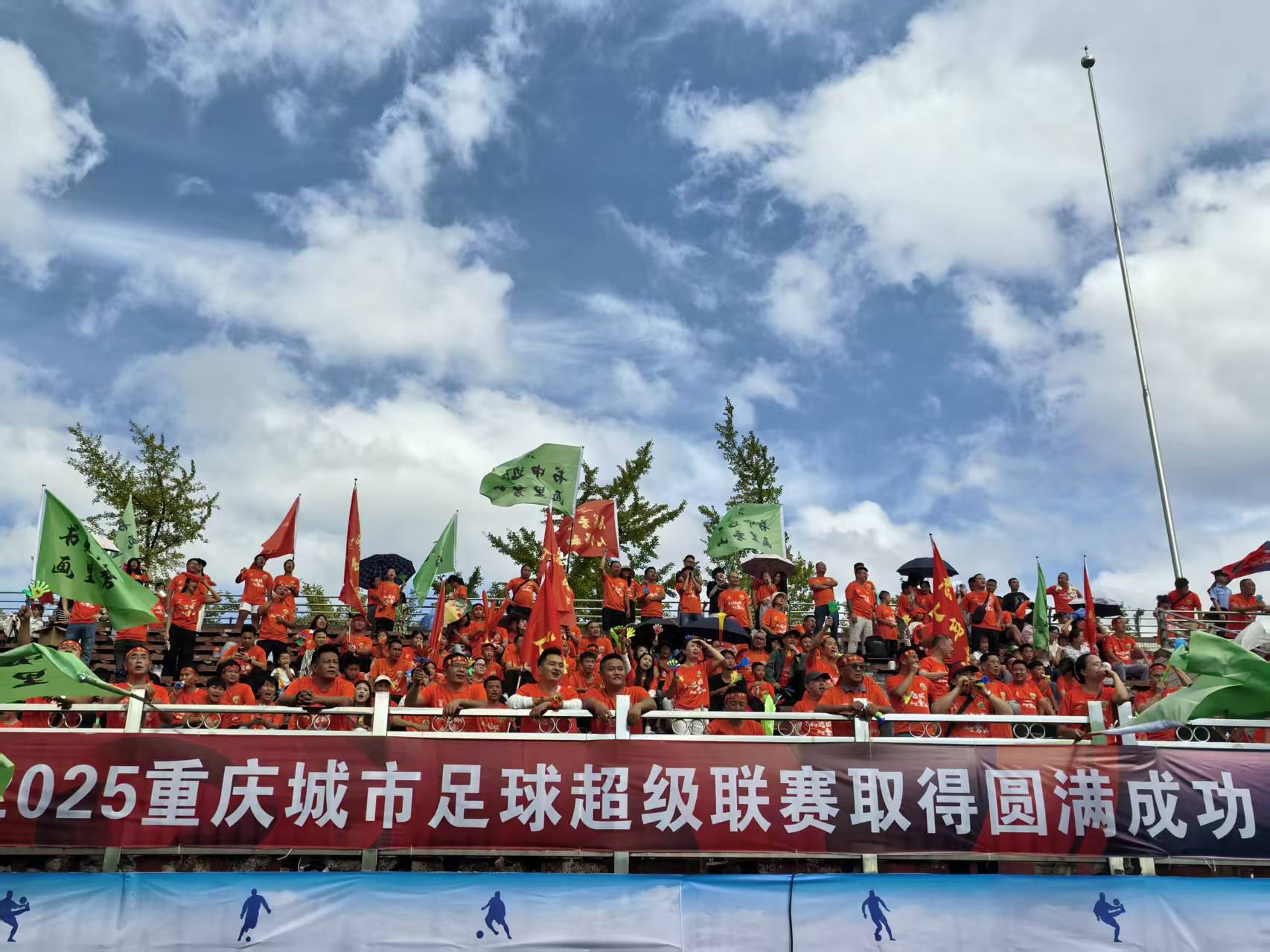 终场哨声落下,赛场欢呼声仍如浪潮般汹涌。观众挥旗击掌,球员走向看台致意,掌声、欢呼与致谢声交织,在仙女山回荡。这一刻,赛场化作欢乐海洋,为这场对决画下难忘句号。