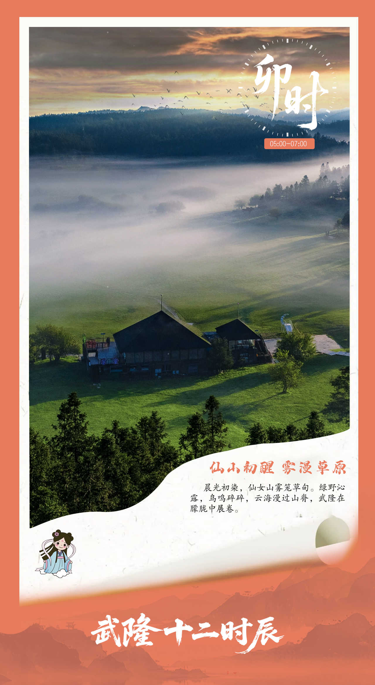 摘要: 卯时・仙山初醒 雾漫草原 晨光微露,仙女山的薄雾轻拥草甸。墨绿草场泛着湿润光泽,牛羊犹眠,偶闻鸟鸣。立于观景台远望,云海缓流山峦间,恍若仙境触手可及——此刻武隆,是一页未染尘嚣的自然诗篇。