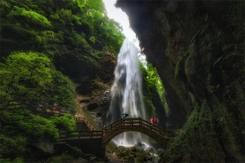 瀑布收敛了夏季的磅礴,化作崖顶洒落的银练,水声滴答潺潺,在幽静峡谷中格外空灵。这份专注于水滴石穿的宁静,是武隆秋日的独特礼物。