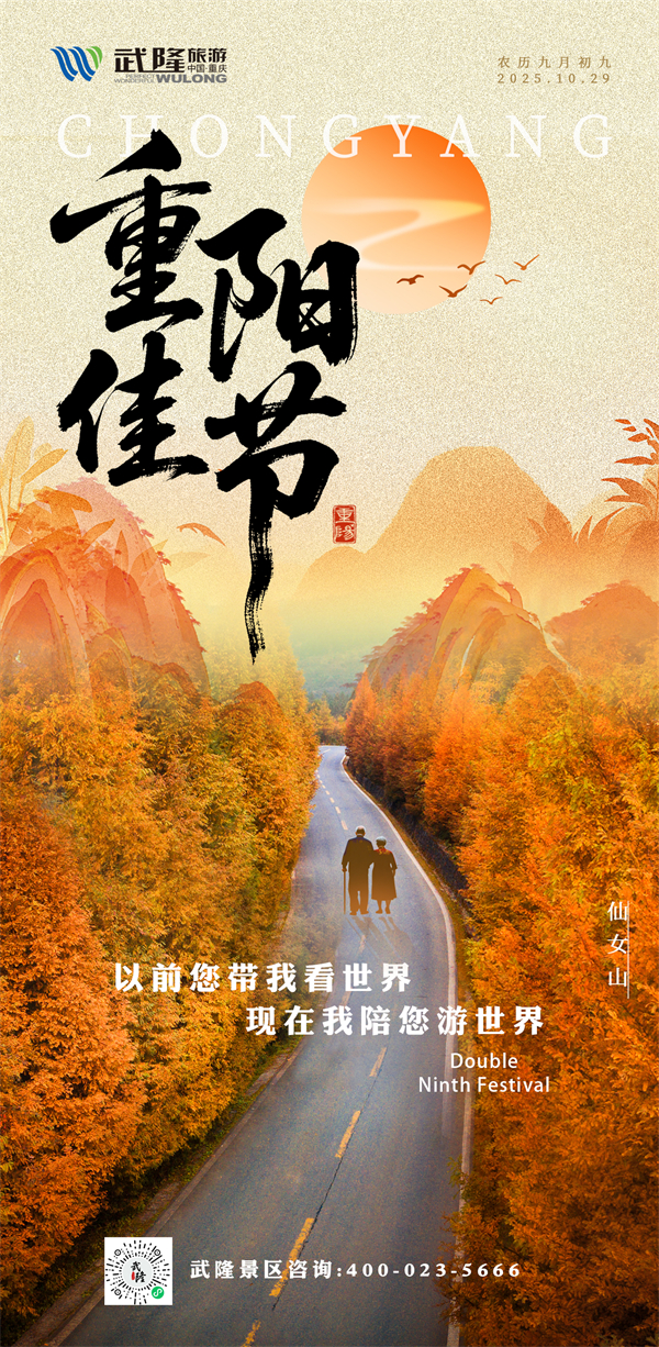 秋意正浓,山河如画。这个重阳,期待与您在武隆相遇,共赴一场层林尽染的秋日盛宴,在绝美的自然奇观中,珍藏与家人相伴的温暖记忆。