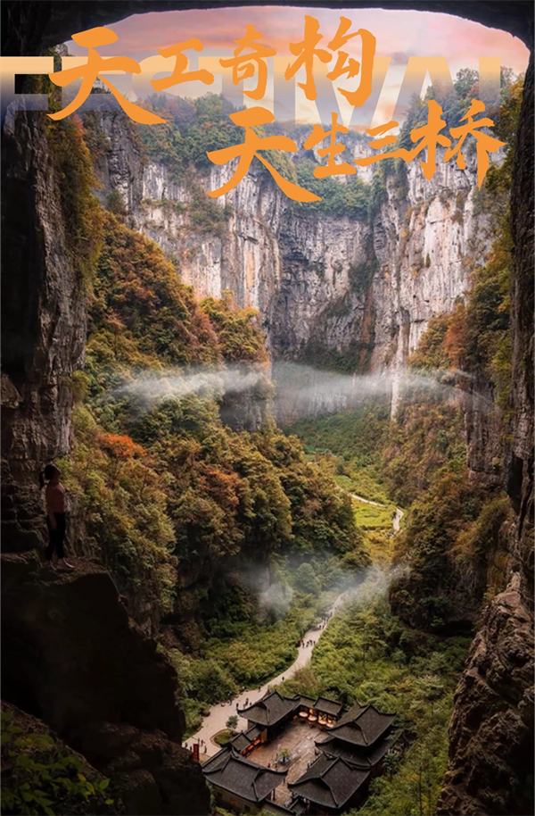 天工奇构·天生三桥:漫步于世界自然遗产核心区,沿着平缓的青石步道,欣赏三座天然石桥的雄伟壮观,感受大自然的鬼斧神工。