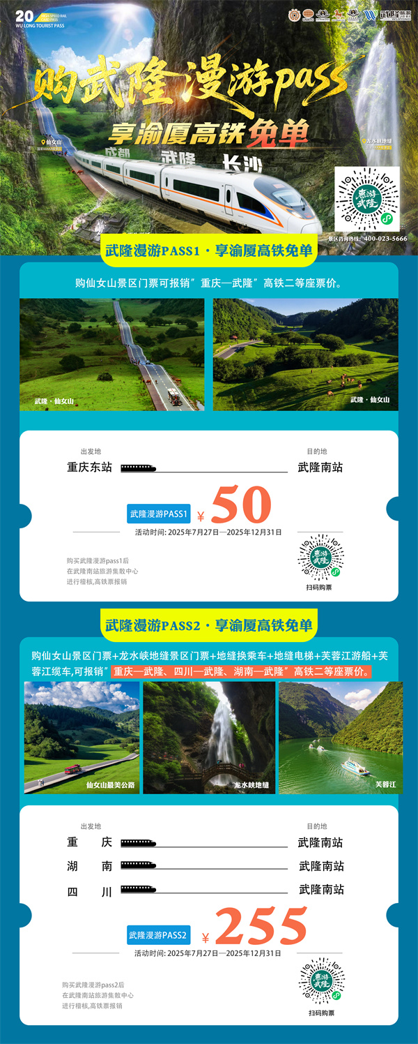 武隆为家庭游客精心设计多款优惠通行证,让陪伴父母出游更加轻松: