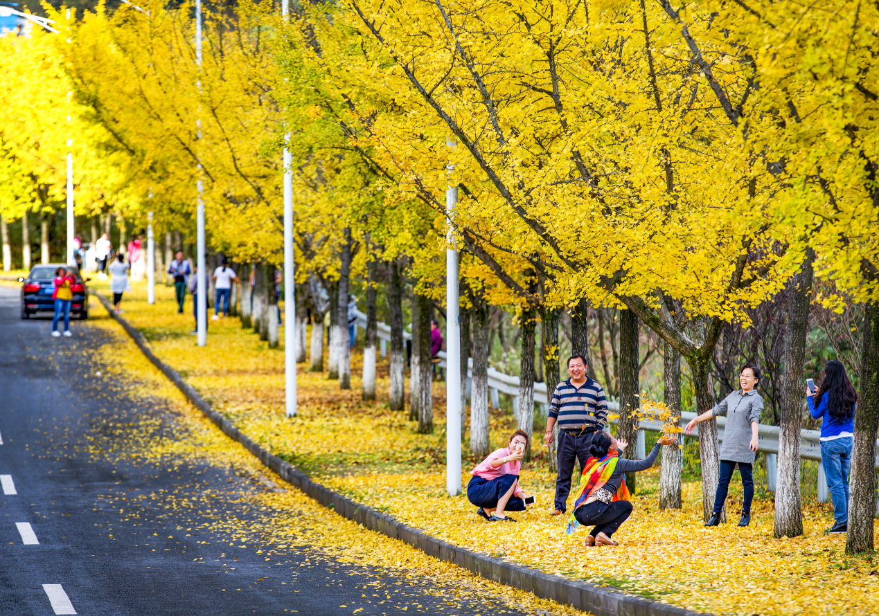 上午漫步银杏大道,在光影交错间捕捉鎏金瞬间;
