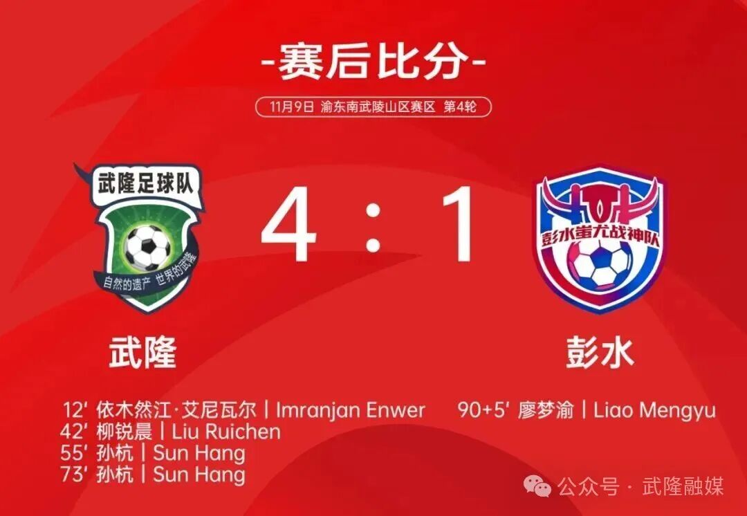 从上一场4比0大胜酉阳,到本场4比1力克彭水,武隆队在两场比赛中狂轰八球,仅失一球,攻防两端都展现出了令人信服的实力。雨中作战,更能检验一支球队的韧性与战术执行力。此役过后,豪取两连胜的武隆队积分榜位置稳步提升,球队士气与信心也达到了一个新的高点。