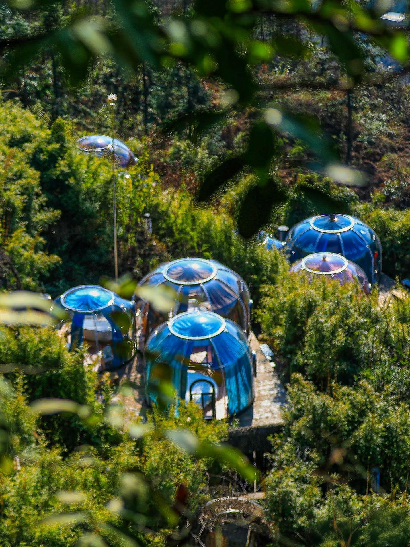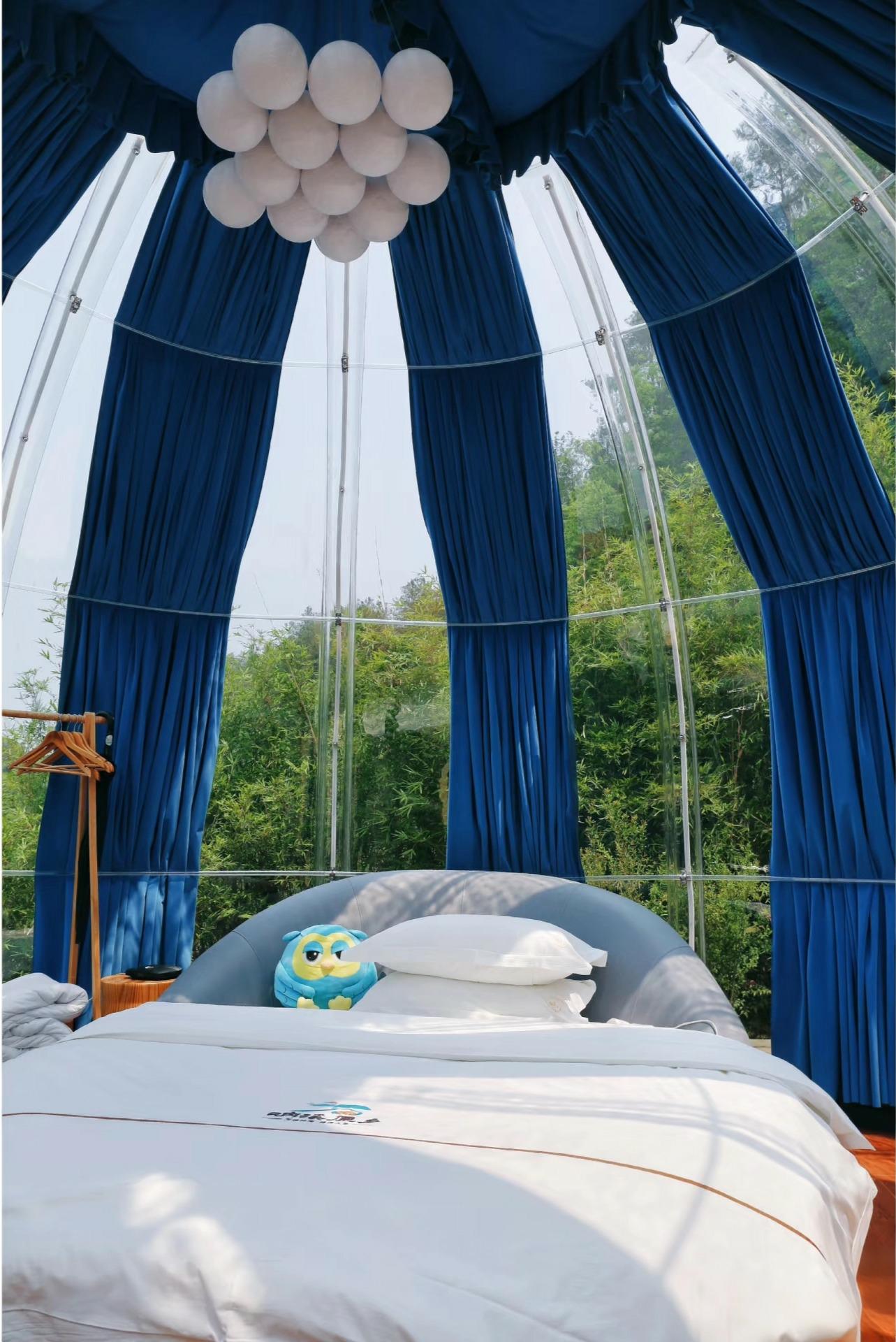 呐溪原乡星空泡泡屋带来独一无二的住宿体验。全透明设计让你360度拥抱自然,将璀璨星空尽收眼底。