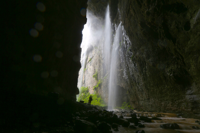 站在天坑底部抬头望,天龙桥像一条巨龙横亘天际,阳光从桥洞漏下形成“一线天”,崖壁上的蕨类植物爬满石缝,恍惚间竟像《阿凡达》里悬浮山的雏形。难怪导演迈克尔·贝说:“这里不需要绿幕,天生就是科幻片的天然片场。”