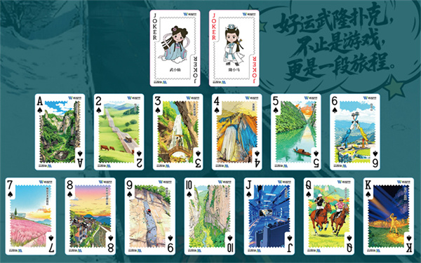 武隆文创扑克可不只是普通的纸牌。它将武隆独特的自然风光、丰富的人文历史巧妙地融入其中。每一张牌面都像是一扇通往武隆魅力世界的窗口,展现着仙女山的秀丽、天生三桥的神奇、芙蓉洞的瑰丽……这些精美的画面,不仅是视觉上的盛宴,更是对武隆之美的生动诠释。