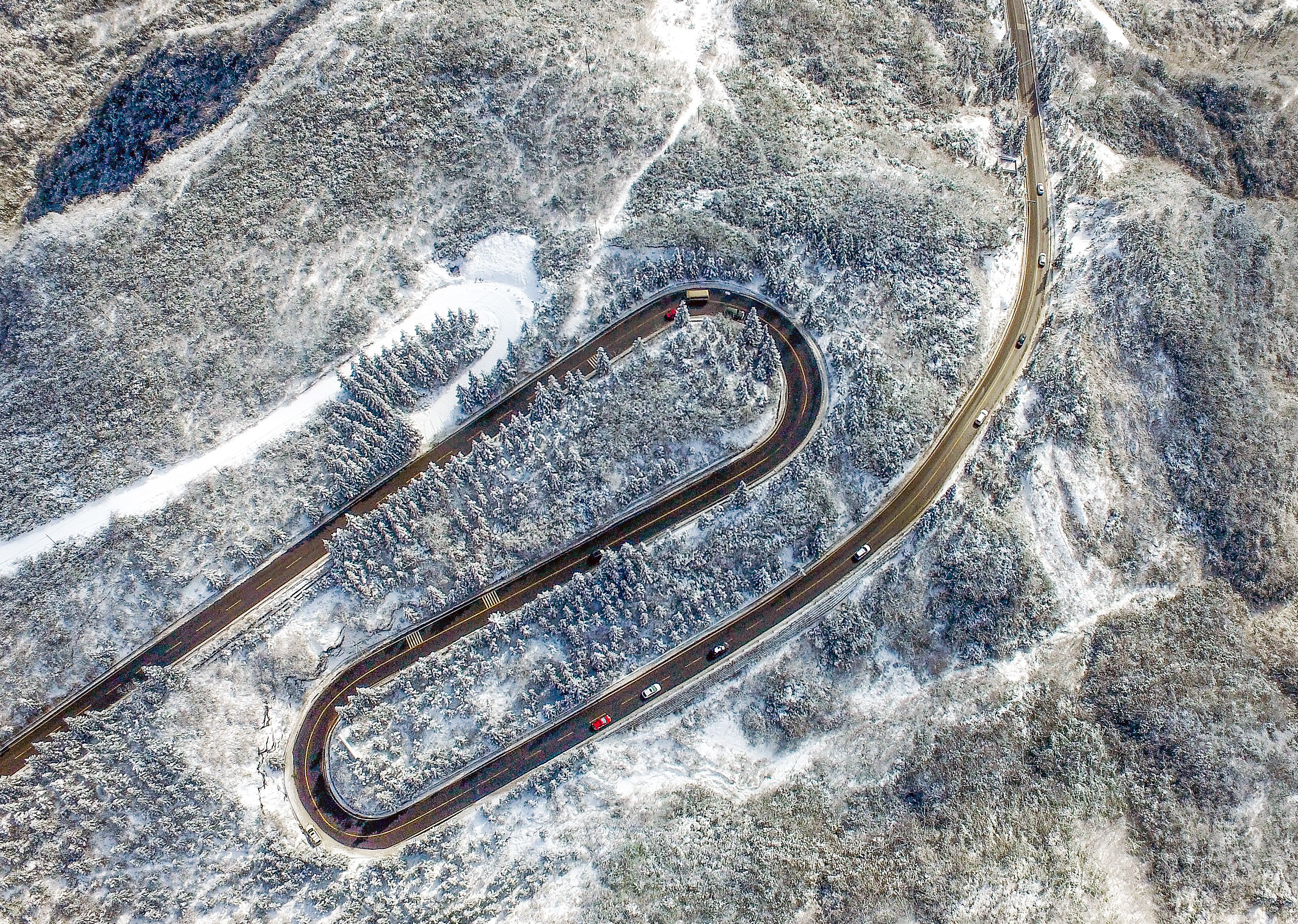 要遇见仙女山的雪,你得先穿过武隆的幽幽深谷,看过天生三桥的雄奇,赏过芙蓉洞的瑰丽,再沿着蜿蜒的山路向上。