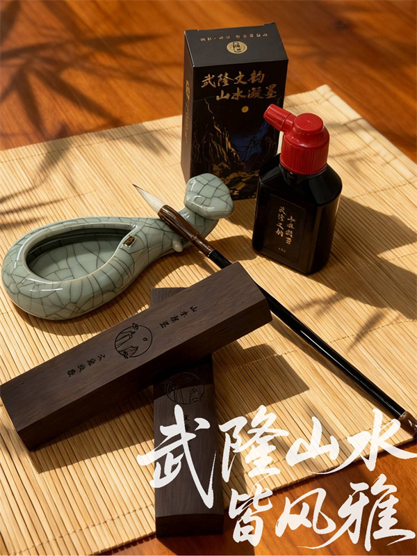 一套武隆风光扑克牌,54张牌面映着天坑地缝的雄奇、仙女山的秀美。与友人对弈时,山水就在指尖流转。或者,选一套融入了武隆山水灵韵的笔墨纸砚——砚台似乌江石般温润,纸张仿若山间云雾。