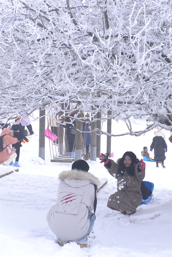 赏雪、玩雪的游客络绎不绝,拍照打卡的欢声笑语与孩子们在雪地里的嬉戏声交织在一起,汇成节日最美的乐章。