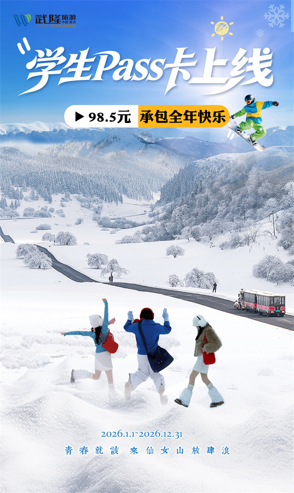 谁懂啊!学生党想旅行真的太难了——钱包空空,却满脑子都是山川湖海;时间零碎,却渴望一场说走就走的逃离。课表之外的时光,总该留给一点不一样的风景吧?别再让预算和犹豫困住你的脚步!武隆景区直接给全国学子送上重磅福利——98.5元学生专属Pass卡,承包你一整年的诗和远方!从1月到12月,全年有效期覆盖春夏秋冬,仙女山、天生三桥、龙水峡地缝、芙蓉洞四大核心景区,及呐溪原乡特色项目一次玩个够!