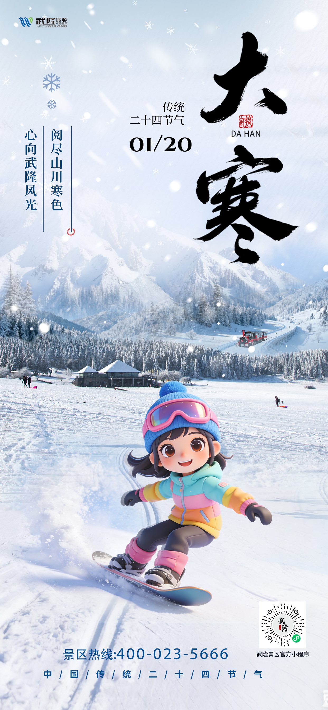 明天就是大寒,一年中最冷的时节,却也是武隆最温暖的时刻——我们准备好了热茶、美景和惊喜,只等一场雪,和每一个不畏寒冷的你。