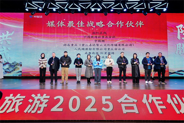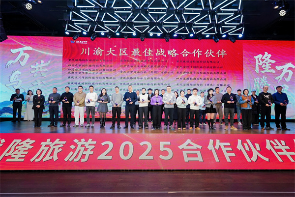耕耘皆有获,奋进正当时。为表彰先进、激励同行,年会现场举行了隆重的颁奖仪式,为2025年助力武隆旅游高质量发展的旅行社、研学机构、OTA电商、媒体等突出贡献的合作伙伴,颁发“最佳战略合作伙伴”奖杯,以致敬每一份坚守与深耕。