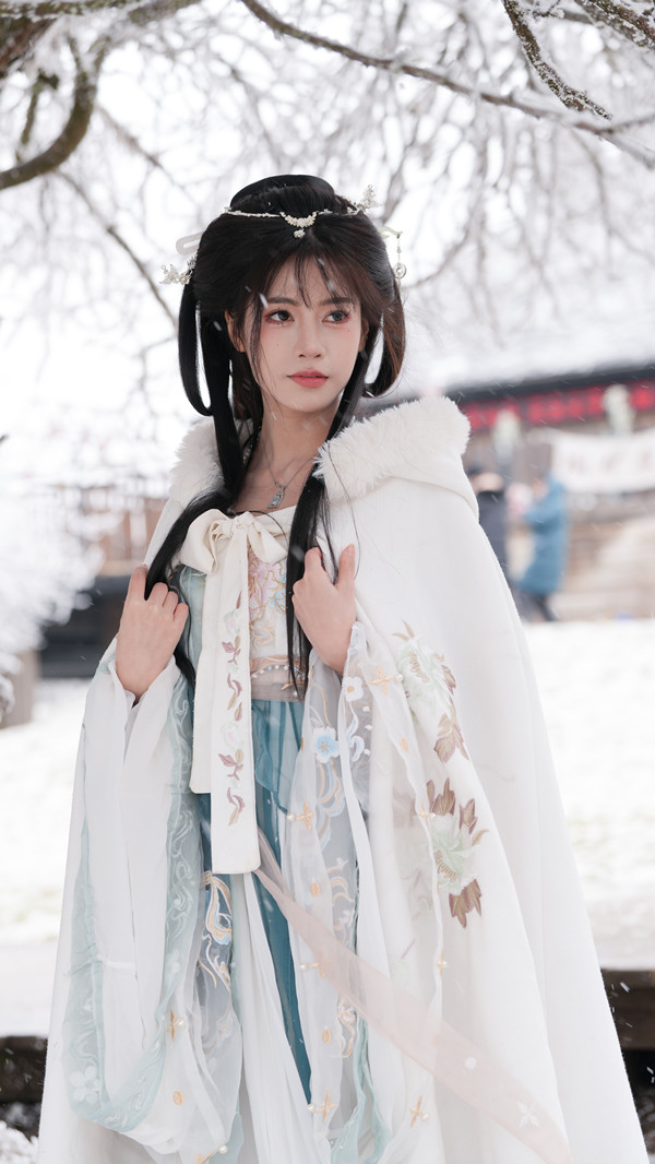 提前挑选一套心仪的古装至关重要,可以是飘逸的汉服,也可以是英姿飒爽的唐装。颜色以素白、淡蓝、浅粉、红色为佳。款式上,披风、襦裙、广袖长袍皆可,搭毛领、绒帽、油纸伞更添温暖与韵味。