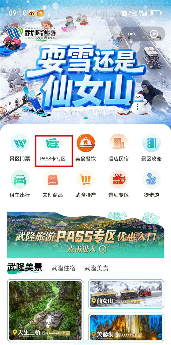 武隆景区针对游客推出了不同类别的PASS卡,计划前往游玩的小仙女请通过搜索“武隆景区官方平台”微信或支付宝小程序,首页找到“PASS卡专区”,点击进去即可选择购买,能省不少钱。
