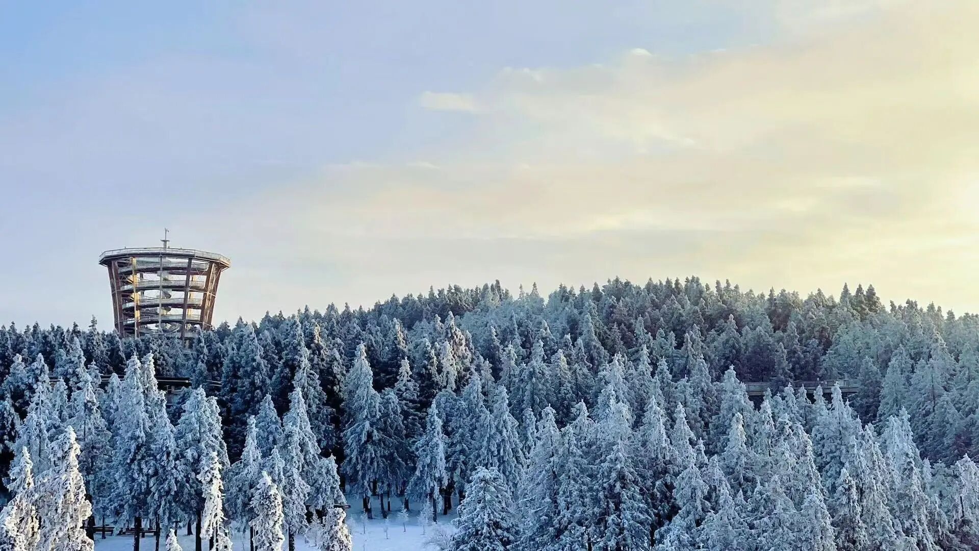 雾凇、冰挂点缀其间,宛如童话世界