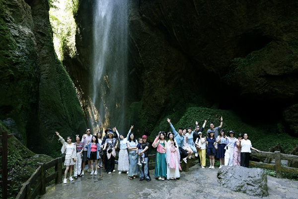 沿着栈道深入这条长达2公里的地缝峡谷,瀑布如银河倾泻,阳光从缝顶洒落,藤蔓垂悬,仿佛进入了一个与世隔绝的秘境。