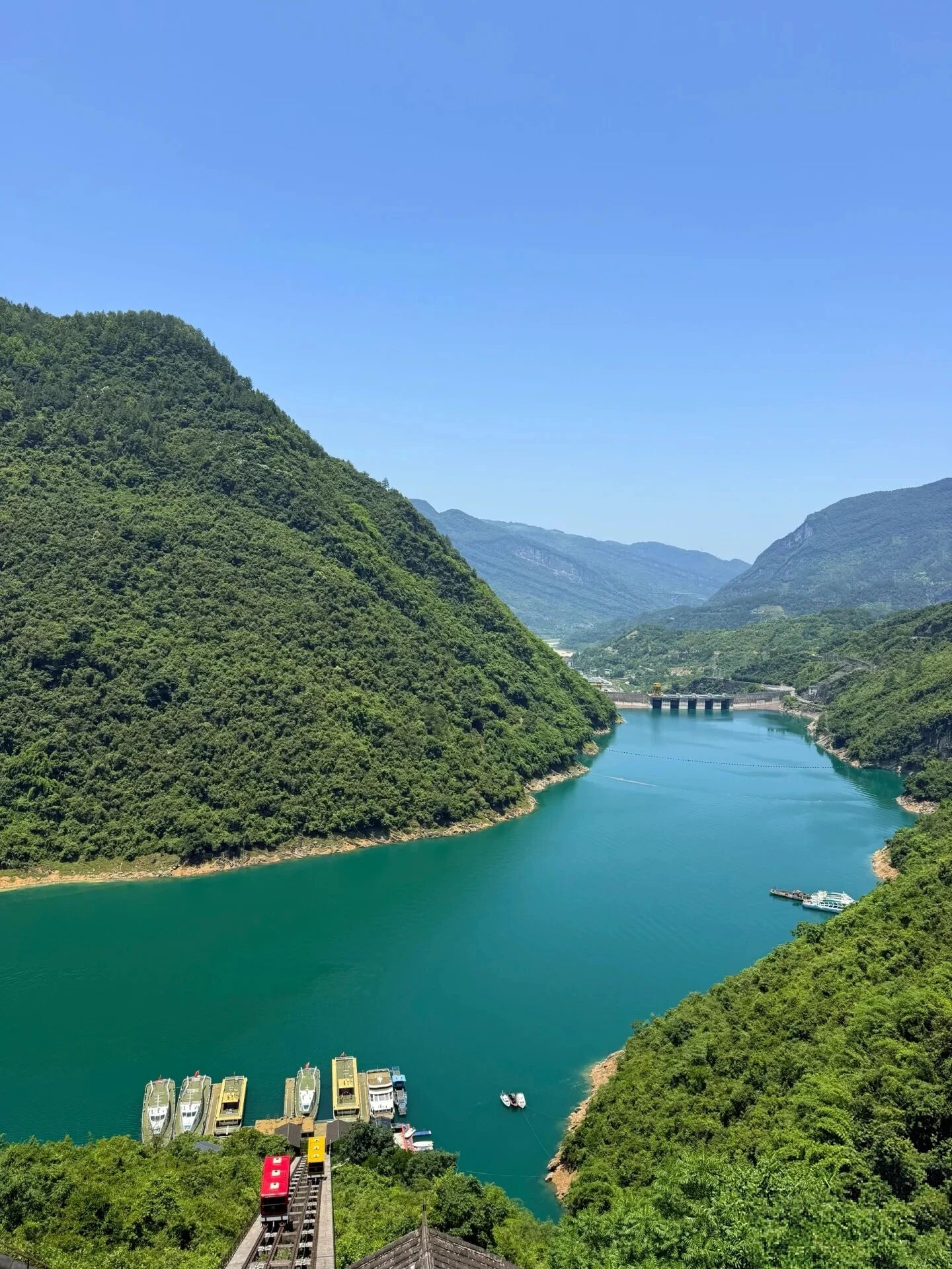 碧水如缎,蜿蜒于青山绝壁之间,