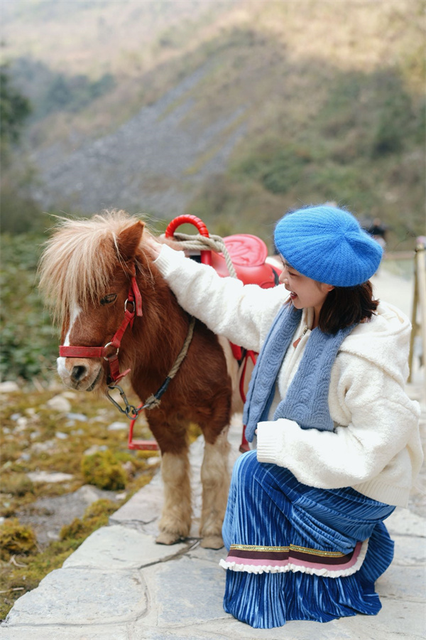 天生三桥景区人气爆棚,除了传统春节氛围营造,“峡谷骑行”项目成为人气焦点。不少游客交替体验欧洲设特兰矮马与国产改良大马骑行,时而悠然漫步于峡谷之间,时而策马驰骋。这种兼具挑战与乐趣的独特体验让游客们大呼过瘾。