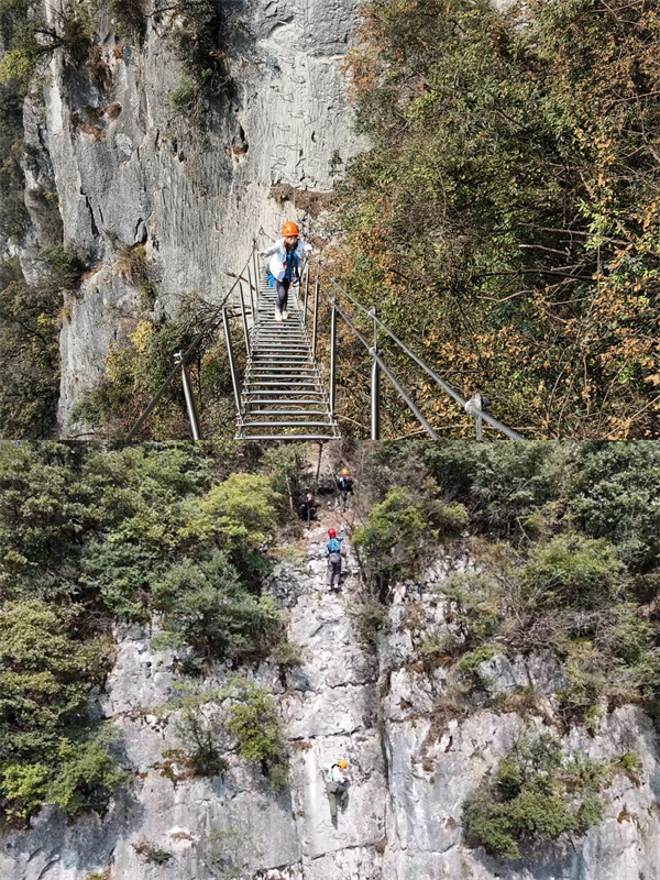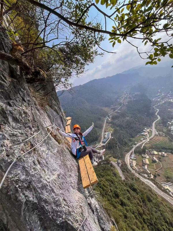 此外,白马山“长空栈道”成为了游客们竞相打卡的热门景点。这条精心打造的300米高空栈道,沿着白马山险峻的山势蜿蜒伸展,仿佛一条巨龙盘踞在山间。游客们攀爬其上,既能俯瞰脚下幽深的峡谷,又能仰望湛蓝的天空,远处山峦叠嶂,云雾缭绕,如诗如画的美景让人流连忘返。栈道上不时传来游客们的尖叫声和欢呼声。