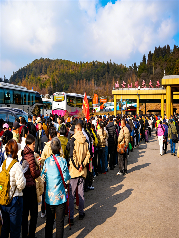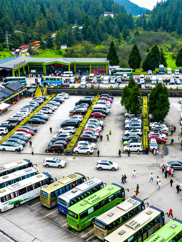 为应对车辆增多的情况,景区设置多个临时停车场,提供充足车位,并通过合理规划停车区域,尽管游客众多,车流量激增,但车辆均有序进入停车场,整齐停放,井然有序,形成一道和谐美丽的风景线。