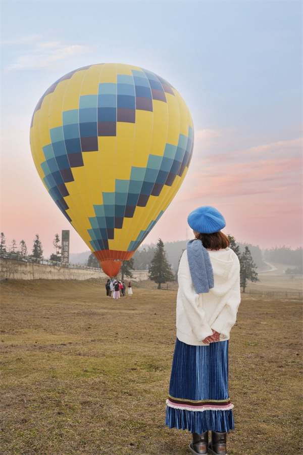 在仙女山10万亩天然草场尽情撒欢,放风筝、露营、骑马、射箭,或乘坐热气球缓缓升空,搭乘小火车穿梭于网络波浪公路间。