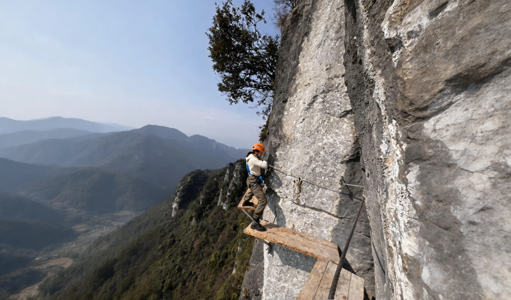 踏上长空栈道征服白马山的险峰,