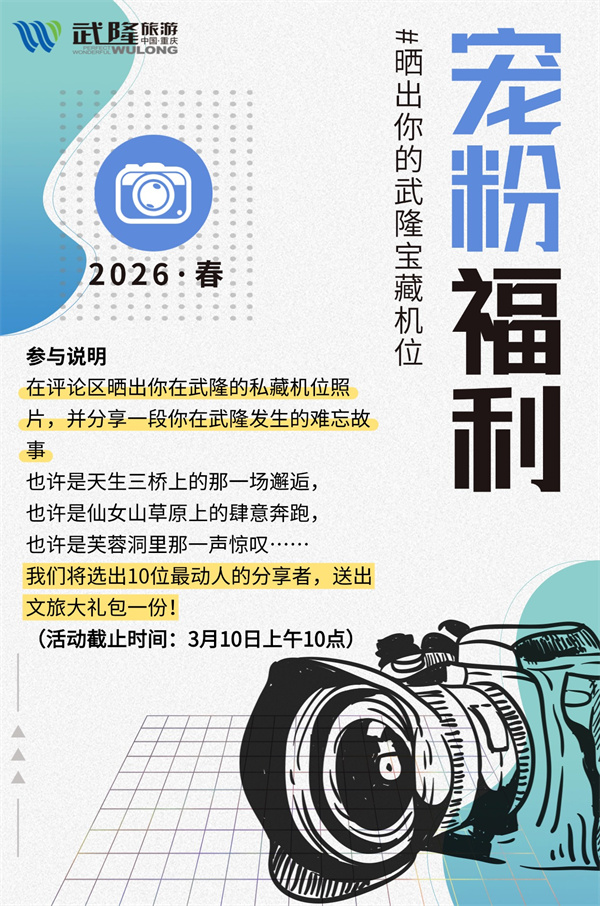 惊蛰至,春意浓。每一张照片,都是一段故事的开始。这些最动人的瞬间,不该只留在你的相册里,更该被我们看见。微信公众号武隆景区评论区等你——晒出你的私藏机位,分享你的难忘故事,文旅大礼包或许就属于你!这个春天,我们在武隆,等春来,也等你来。