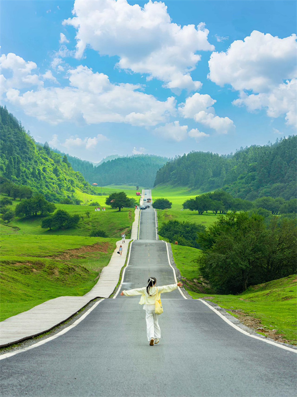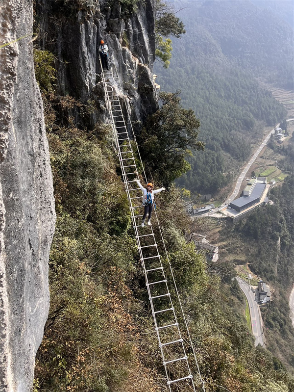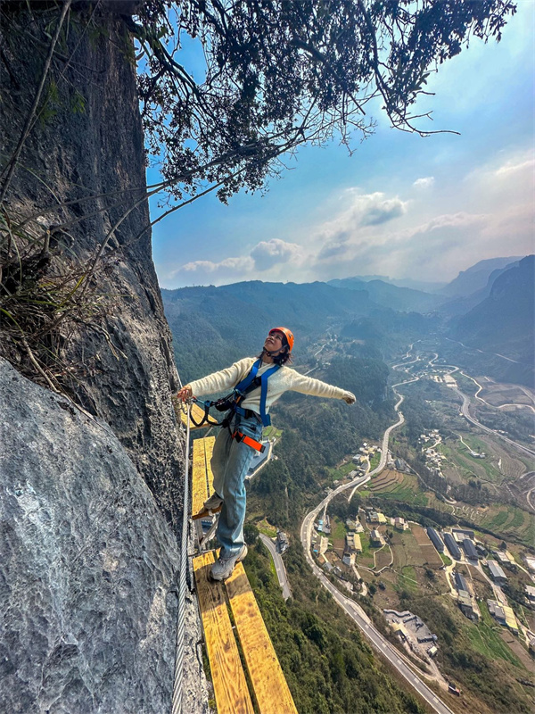 出片秘籍: 春日白马山不仅有网红“飞天之吻”,长空栈道能给你最具冲击力的春日记忆。让队友从斜侧方安全步道抓拍一张云端行走的背影或侧脸——背景是连绵青山与蜿蜒公路。