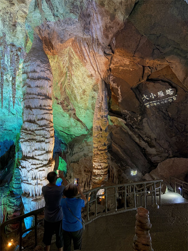 出片秘籍:芙蓉洞的春日奇观藏在形态各异的钟乳石间:站在“巨幕飞瀑”“玉门关”“大小雁塔”前,形态奇特的钟乳石在暖光下泛着温润光泽,近距离仰拍,仿佛窥见地球深处的秘密。