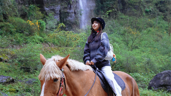 如果你是骑马爱好者,那这段峡谷骑行马道绝对不能错过。一边是峡谷岩壁,一边是潺潺溪流与瀑布,骑马的每一帧都是流动的风景。也可停下来,抓拍一张“骑在画中”的瞬间,又酷又自然。