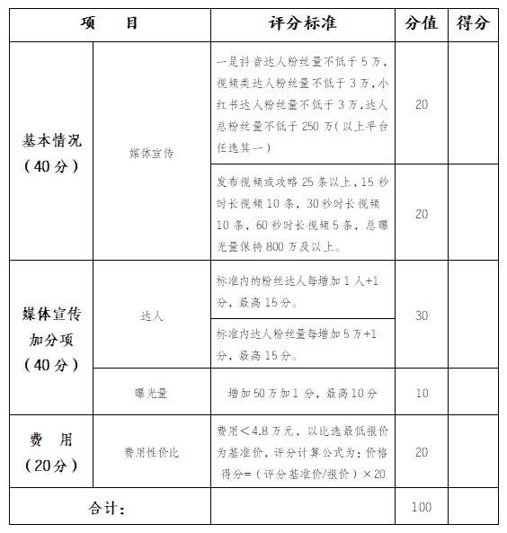 (四)达人要求:一是抖音达人粉丝量不低于5万,视频类达人粉丝量不低于3万,小红书达人粉丝量不低于3万,达人总粉丝量不低于250万(以上平台任选其一);