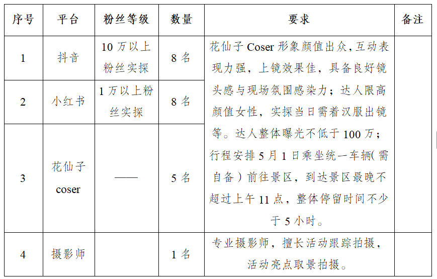 为借助网络达人的影响力,对武隆罩云山进行全方位、多渠道的宣传引流,武隆景区拟采购新媒体达人宣传资源,提升罩云山景区的知名度和流量转化。现将有关事宜公告如下:
