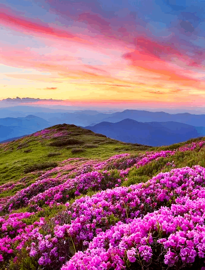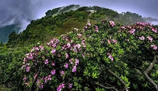 漫山杜鹃次第绽放,整座山像被点燃了一般。站在云端观景台俯瞰——云海之下,花海之上,天地之间只剩这一种惊心动魄的艳色。