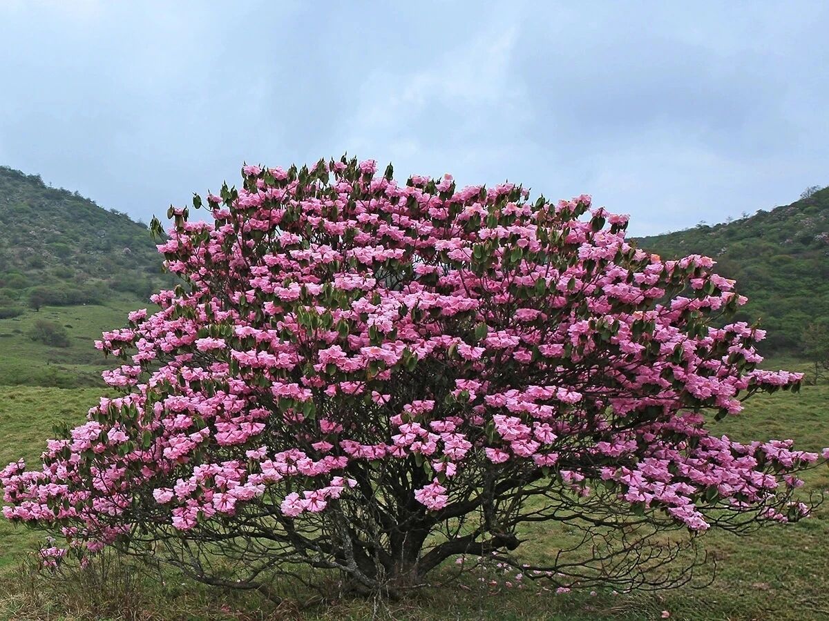 海拔每升高100米,气温下降0.6℃。1800米的高度,过滤掉了凡尘的喧嚣,也过滤掉了99%的花卉品种——只有最坚韧、最稀有的高山杜鹃,敢在这里扎根。