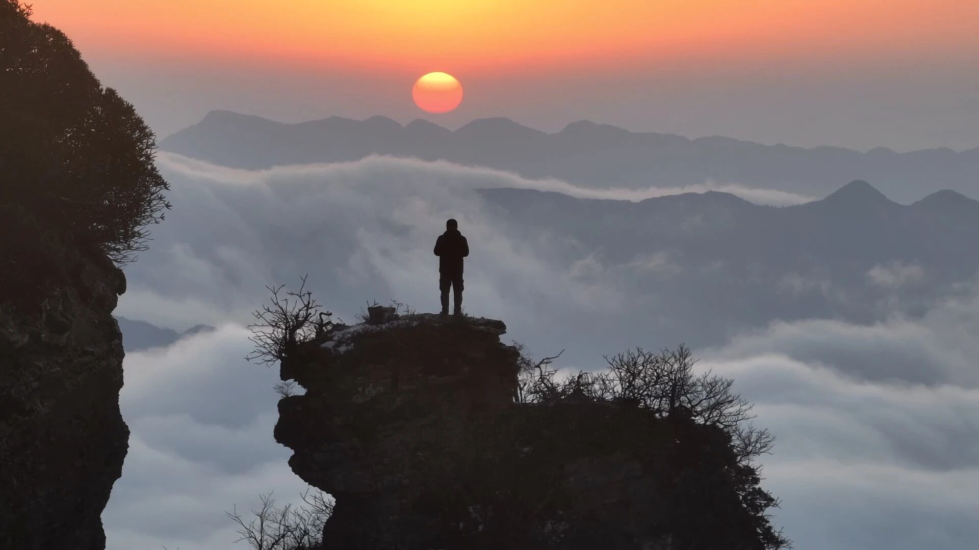 当太阳落入乌江峡谷,罩云山迎来一天中最梦幻的时刻。