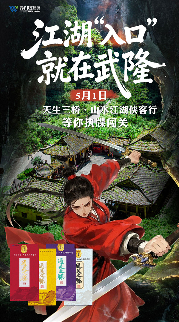 山水藏江湖,侠客踏山河。5月1日,武隆天生三桥将化身“山水江湖平行世界”——踏入其中,无需剧本,不必换装,你便是江湖中人。《天生三桥·江湖侠客行》沉浸式闯关体验,静候天下侠客,执牒而来。