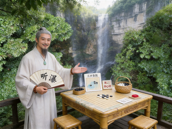 第五关:听瀑对弈——林间瀑布,弈心试炼。对坐山水间,落子定乾坤,得“弈心印”。